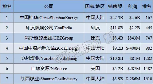 相比于油气来说,煤炭企业显得尤为惨淡,2016年的《福布斯》排行榜中,仅有7家上榜,且4家分布在中国;