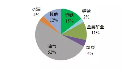 2016年《福布斯》排行榜中,165家矿业公司业务领域包括油气、煤炭、钢铁、金属矿产、水泥以及钾盐等行业。其中油气公司为85家,占52%;煤炭企业为7家,占4%;钢铁企业有24家,占15%;金属矿业公司有19家,占11%;水泥企业有6家,占4%;钾盐企业有4家,占2%。