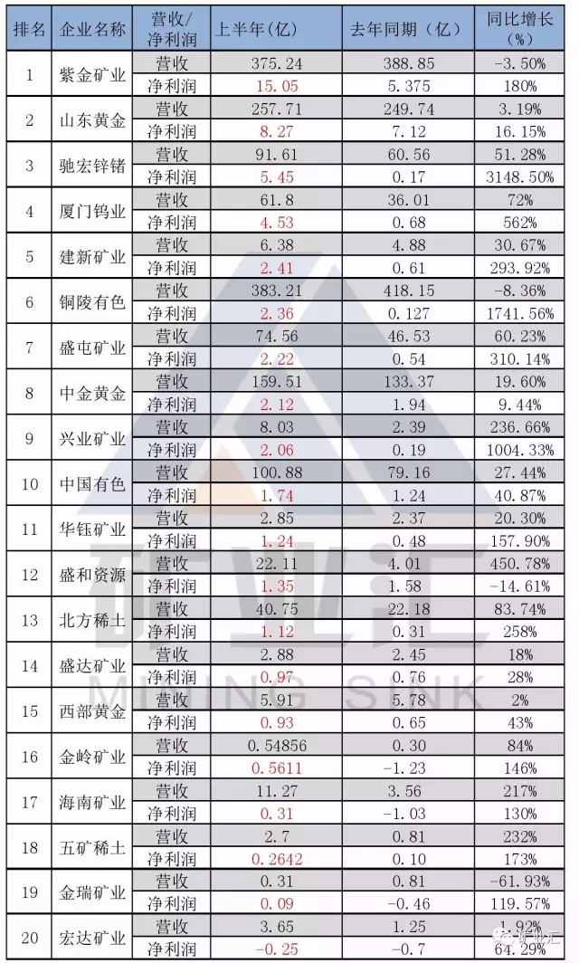 矿业汇丨20家矿业有色企业上半年业绩大排行,迎来久违的爆发增长