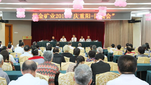 本网讯 10月19日,重阳佳节即将到来之际,紫金矿业集团组织召开2015“庆重阳-团圆会”。紫金矿业集团总裁王建华、工会主席刘文洪与100多名退休老员工欢聚一堂、共叙情谊,并代表紫金矿业集团公司向他们致以节日的问候和诚挚的祝福。