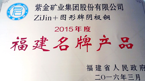 紫金牌阴极铜获评“2015年度福建名牌产品”