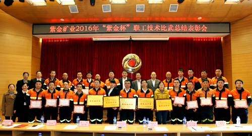 本网讯 3月2日,紫金矿业工会在紫金山金铜矿召开本土企业职工技术比武总结大会,表彰了在2016年本土企业首届“紫金杯”职工技术大比武中取得优异成绩的技术能手。