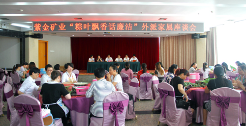 本网讯 5月27日,紫金矿业集团工会和女工委联合举办了“粽叶飘香话廉洁”外派员工家属座谈会,共100名外派员工家属参加了此次活动。