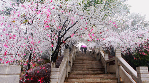 近日,南方气温持续降低,多地降雪。紫金山国家矿山公园也披上了银装。