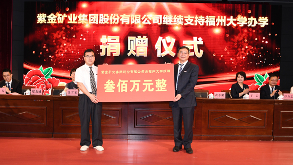 2007年以来,紫金矿业集团全方位支持创办福大紫金矿业学院,投入1.5亿元建设上杭教学基地,选派六批优秀专业技术骨干人员作为工程型教师参与学院教学活动,设立了“陈景河特优毕业生”奖学金,持续捐赠近6000万元。