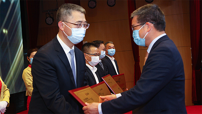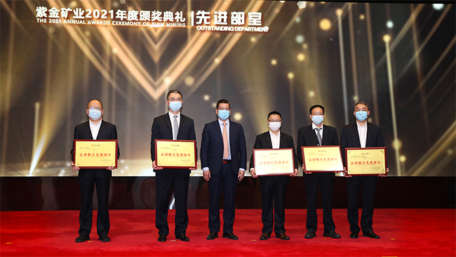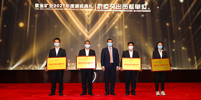 本网讯 弘扬紫金精神,凝聚创新与奋斗的力量。2月5日,紫金矿业高规格举办颁奖典礼和先进事迹宣讲会,向2020年度工作成绩突出的先进集体和先进个人致敬。此次表彰包含协作单位人员,并特别增设了抗击新冠疫情表彰奖项。