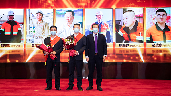 在本次表彰中,以巨龙铜业总经理吴健辉为代表的巨龙团队获得特殊奖励金、先进单位、优秀项目等多项奖项,吴健辉获得特等功荣誉称号。2019年6月以来,吴健辉带领团队直面老巨龙长期停工、历史遗留问题繁杂等诸多困难,克服高原缺氧、高寒、低压的极限挑战,团结50多家协作方,发扬老西藏精神和“艰苦创业、开拓创新”的紫金精神,点燃了一场紧锣密鼓的建设热潮,施工计划科学安排,工程瓶颈稳步突破,上百项安全、设计、建设、安装、调试等方面的难题逐一攻克,高峰期参建人员达7000余人,最终仅历时一年半,于2021年12月底建成我国最大的世界级铜矿,创造了最高海拔的“紫金速度”和“紫金奇迹”。
