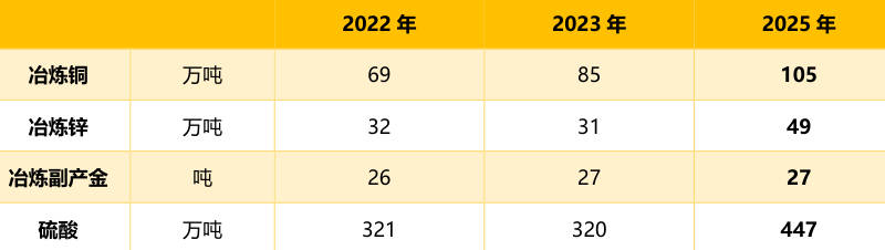 2.主要冶炼产品(含副产品)产量规划