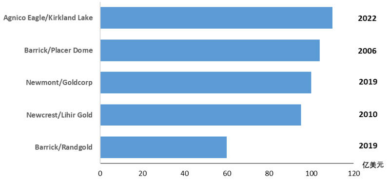 图表8:全球前五大黄金并购(资料来源:标普财智)