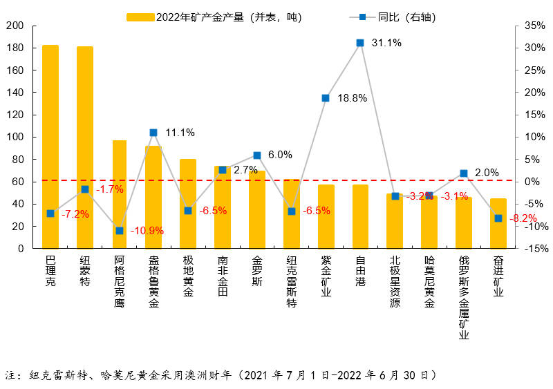 图表9:2022年全球黄金龙头企业矿产金产量