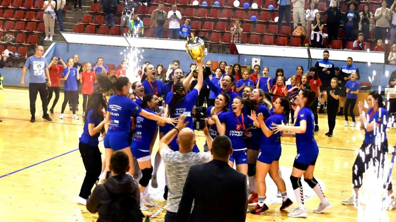 捧起塞尔维亚博尔女子手球队的荣耀之杯