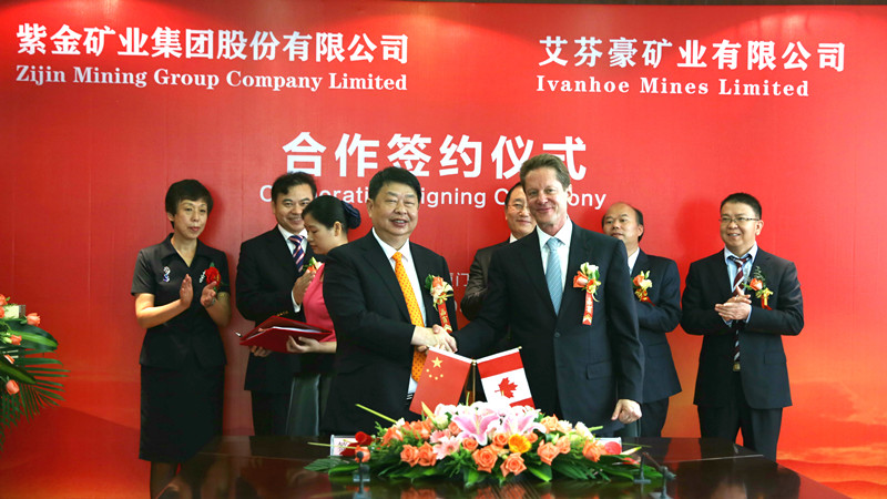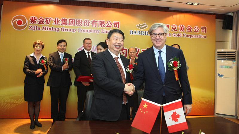 5月26日,紫金矿业与艾芬豪和巴理克两大国际矿业巨头“握手”结成战略合作关系,共同开发世界级超大铜、金矿。