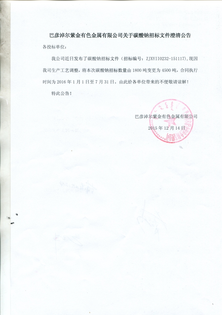 巴彦淖尔紫金碳酸钠招标文件澄清公告784