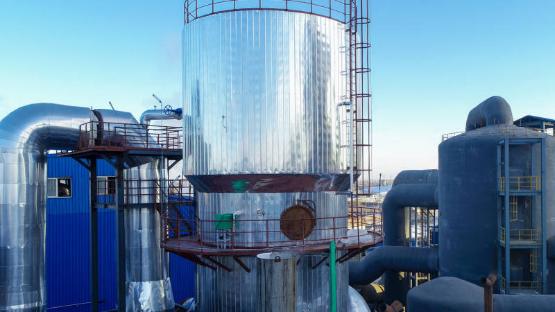 过去,黑龙江紫金铜业在SO2烟气制酸的过程中,已实现高温烟气的余热以及反应放热的高效利用以生产动力蒸汽,但硫酸装置干燥和吸收过程中产生的大量热量长期因高温浓硫酸的强腐蚀性而受到很大的限制,产生了长期的浪费。2022年,黑龙江紫金铜业与安徽盛特环境科技有限公司合作,建立了低温余热回收系统。该系统利用浓硫酸吸收过程放出的大量低温热,持续稳定生产0.8MPa(G)饱和蒸汽45t/h。在夏季我们利用凝汽式汽轮发电机组发电,每个夏季可生产2,000万kWh的电力,在冬季则转入供暖系统,助力公司节能降碳。