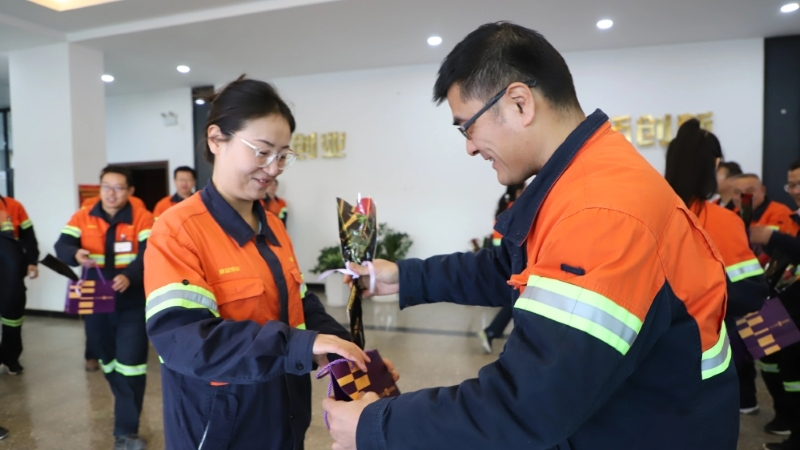 紫金锌业组织了10余名男同事,为前来上班的女同事送上鲜花和礼物,致以节日祝福。紫金锌业工会、妇委会还安排了妇科专项免费体检活动。